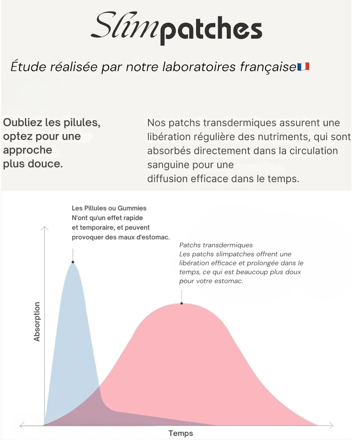 Basée sur la libération prolongée des actifs, notre technologie Slimepatches™ assure une diffusion stable des ingrédients pendant 8 heures, directement dans la circulation sanguine, sans passer par le système digestif.