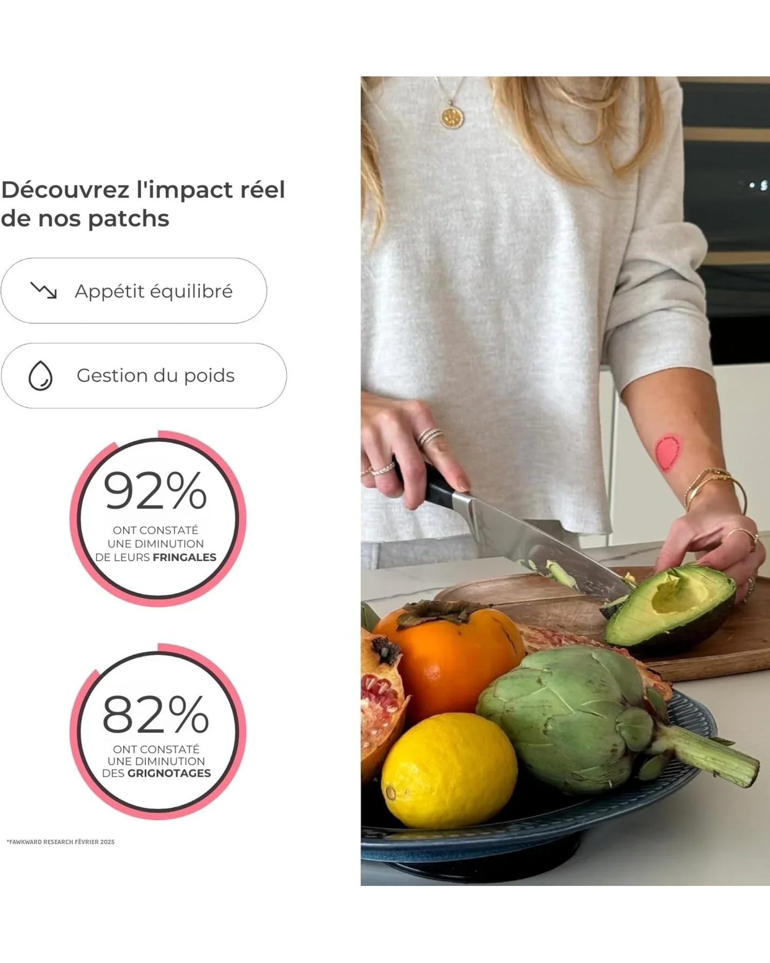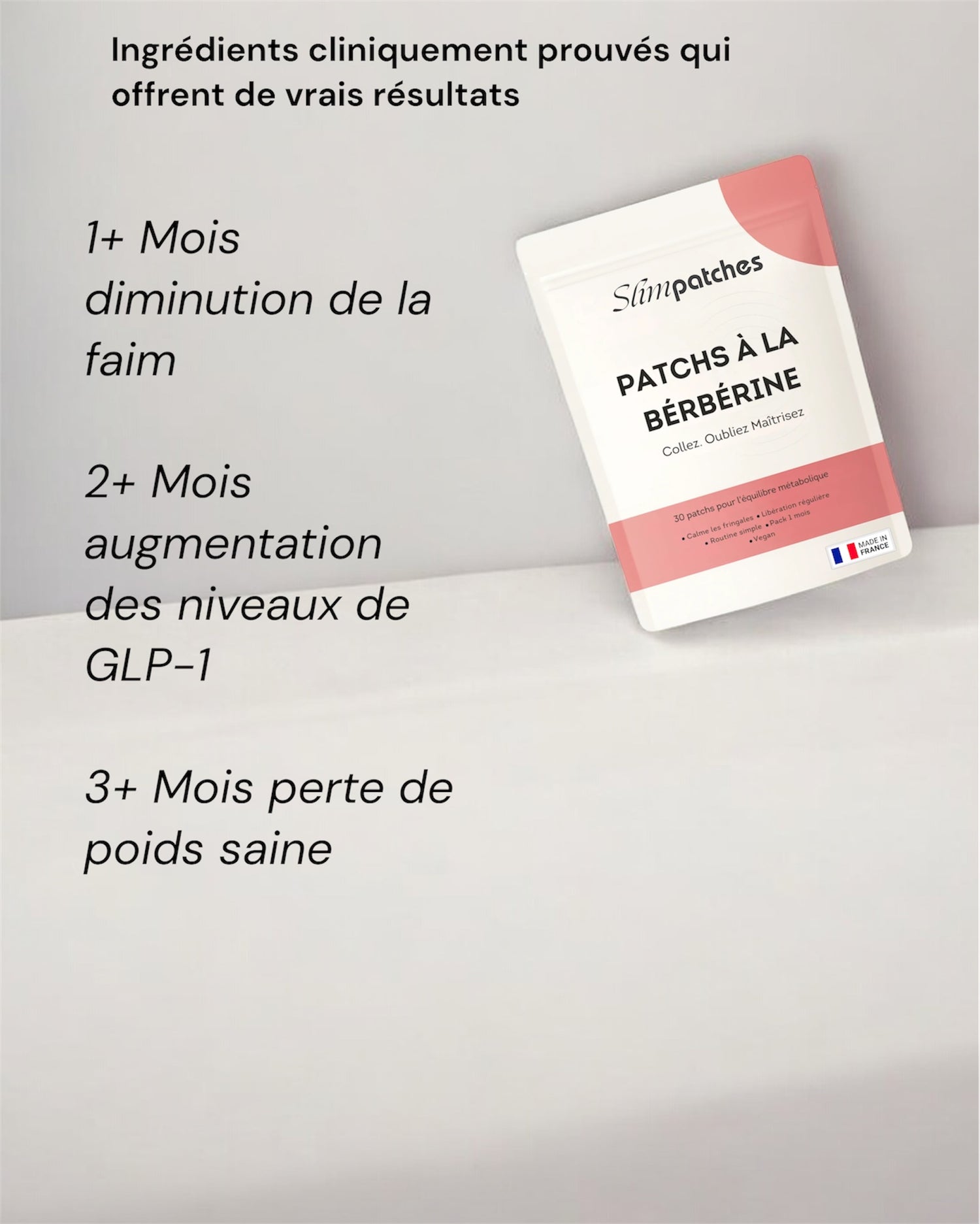 SlimPatches™ offre une approche douce, naturelle et progressive : une stabilité métabolique retrouvée, une gestion apaisée de l’appétit, et une sensation de contrôle durable sur votre équilibre alimentaire.