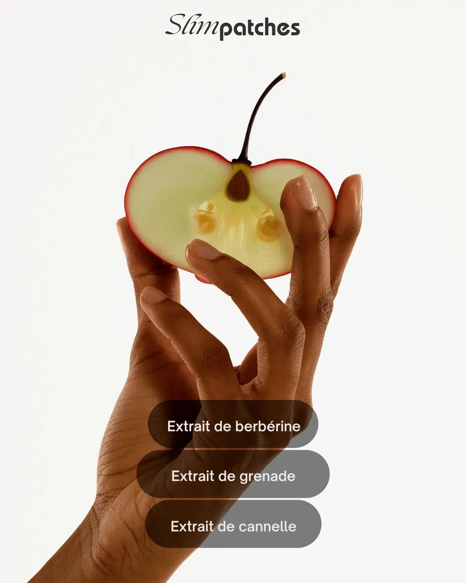 SlimPatches™ sont des patchs transdermiques diffusant lentement un complexe végétal à base de berbérine, grenade et cannelle.