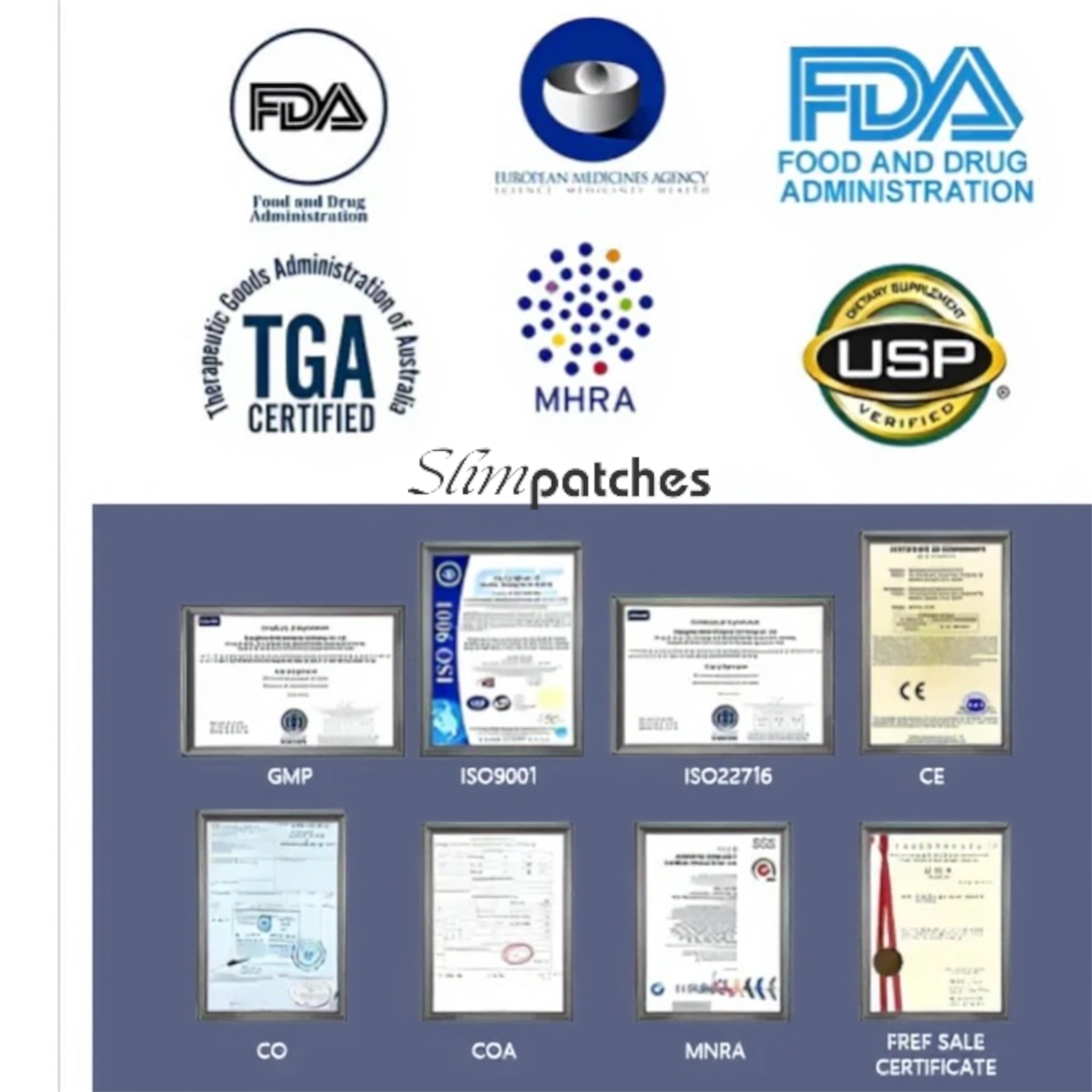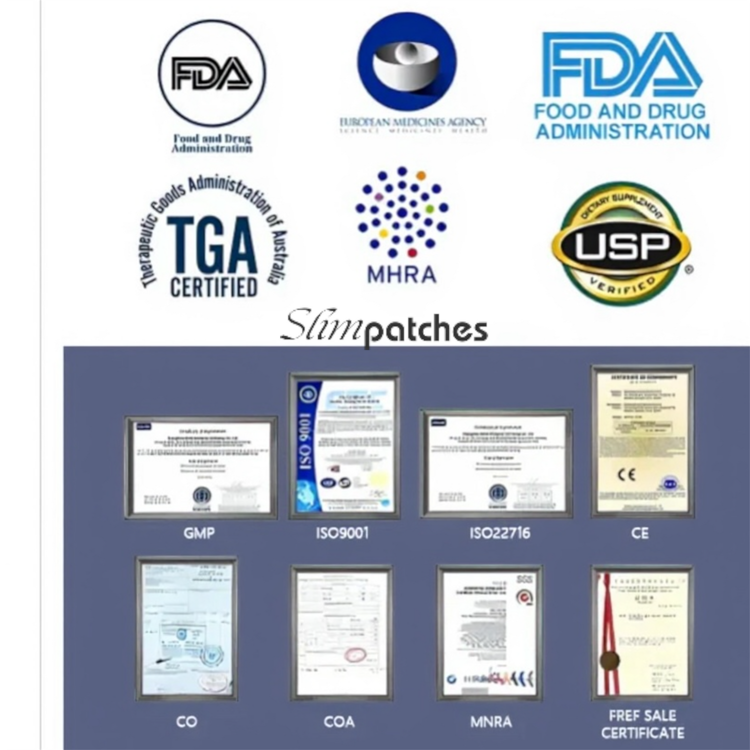 Nos produits sont conformes aux normes internationales les plus strictes (FDA, ISO, GMP, CE...).Chaque patch est fabriqué dans des installations certifiées et contrôlées. Notre engagement: offrir un produit sûr, efficace et reconnu par des organismes indépendants. Achetez en toute confiance, votre santé mérite l'excellence.